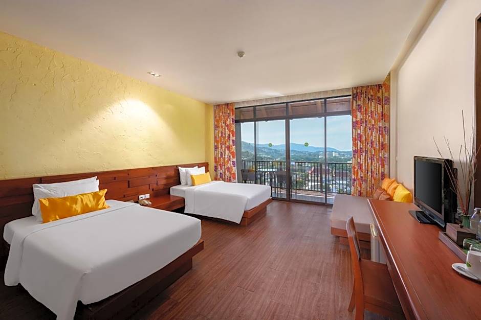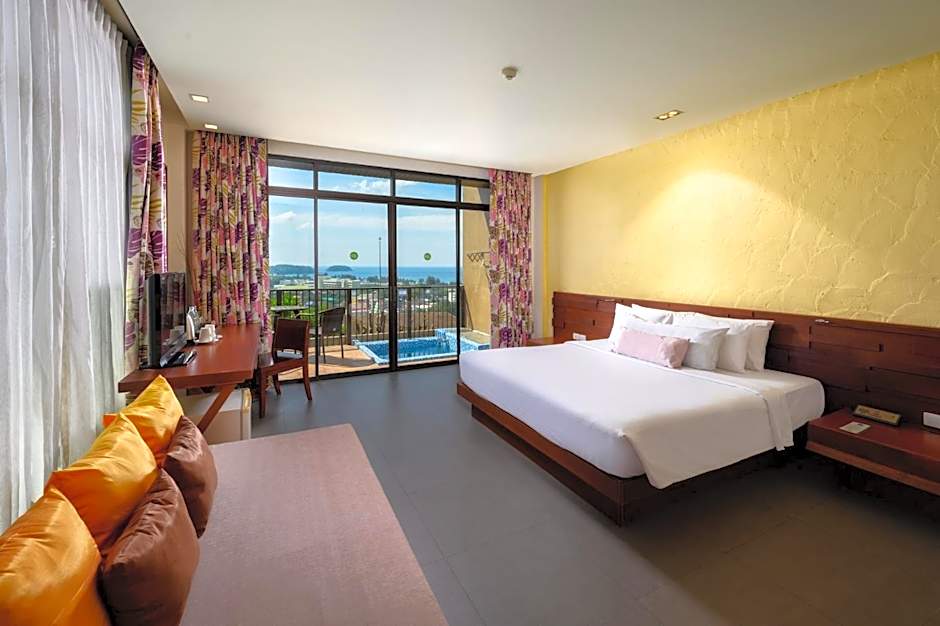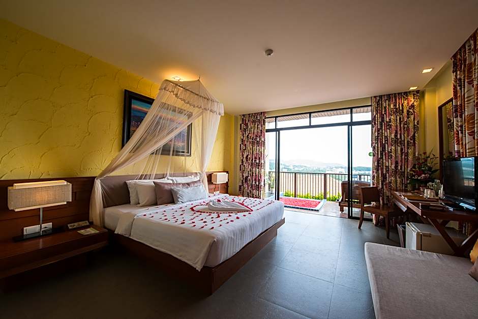 Spacious rooms overlook the scenic Andaman Sea and tropical forest. Enjoy beautiful sunset views over Karon Bay from a private terrace. Bathroom has a separate bathtub and shower.